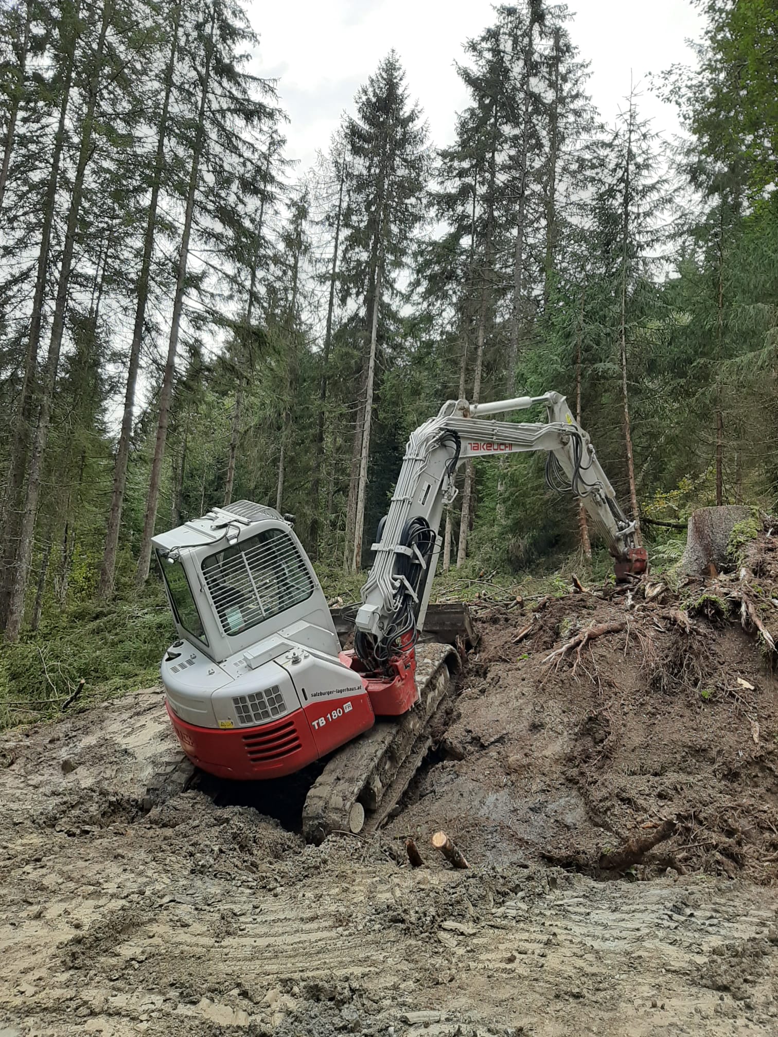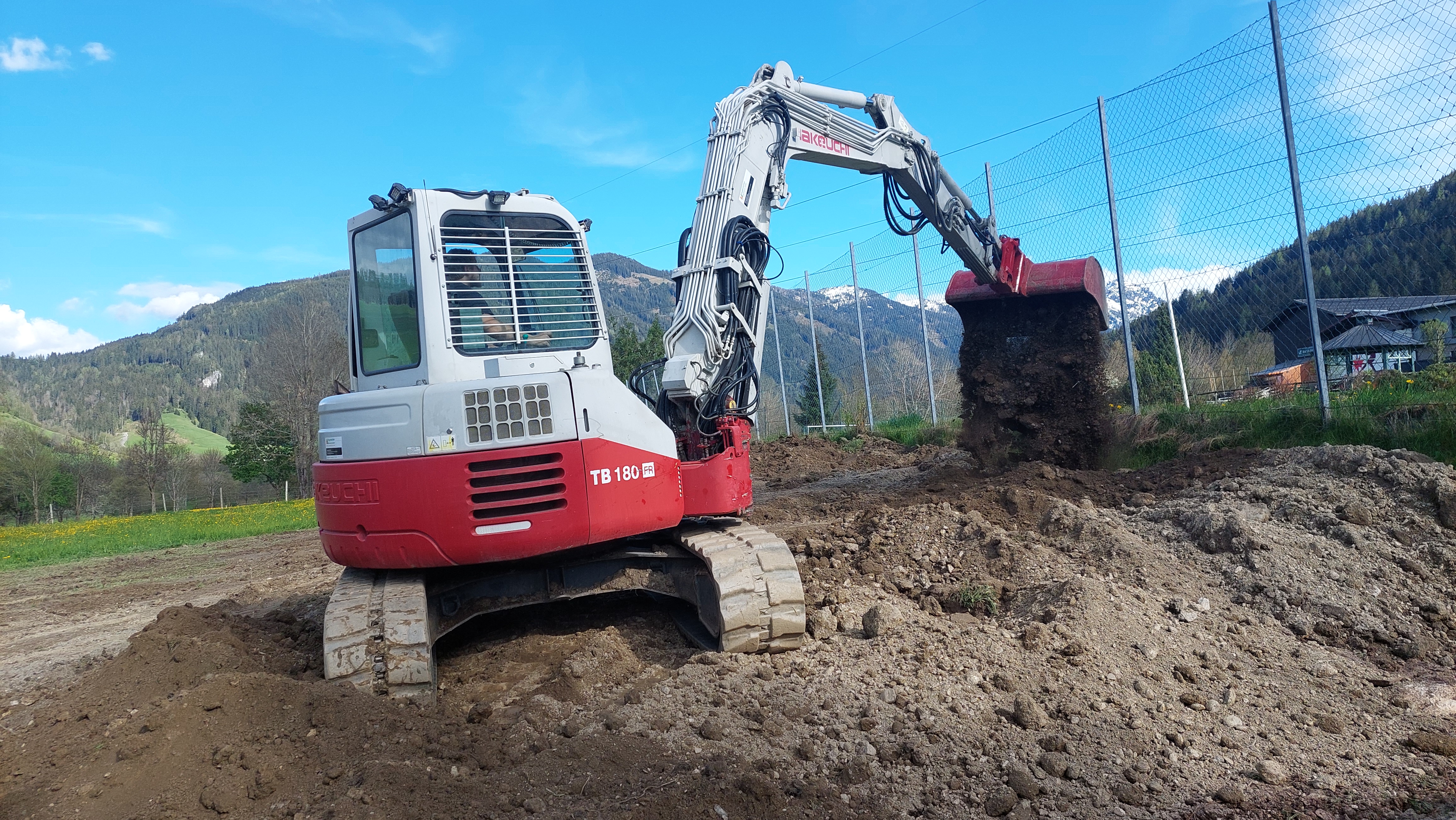 Stets im Einsatz mit einem 8,3-Tonnen-Takeuchi-Bagger mit Rototilt